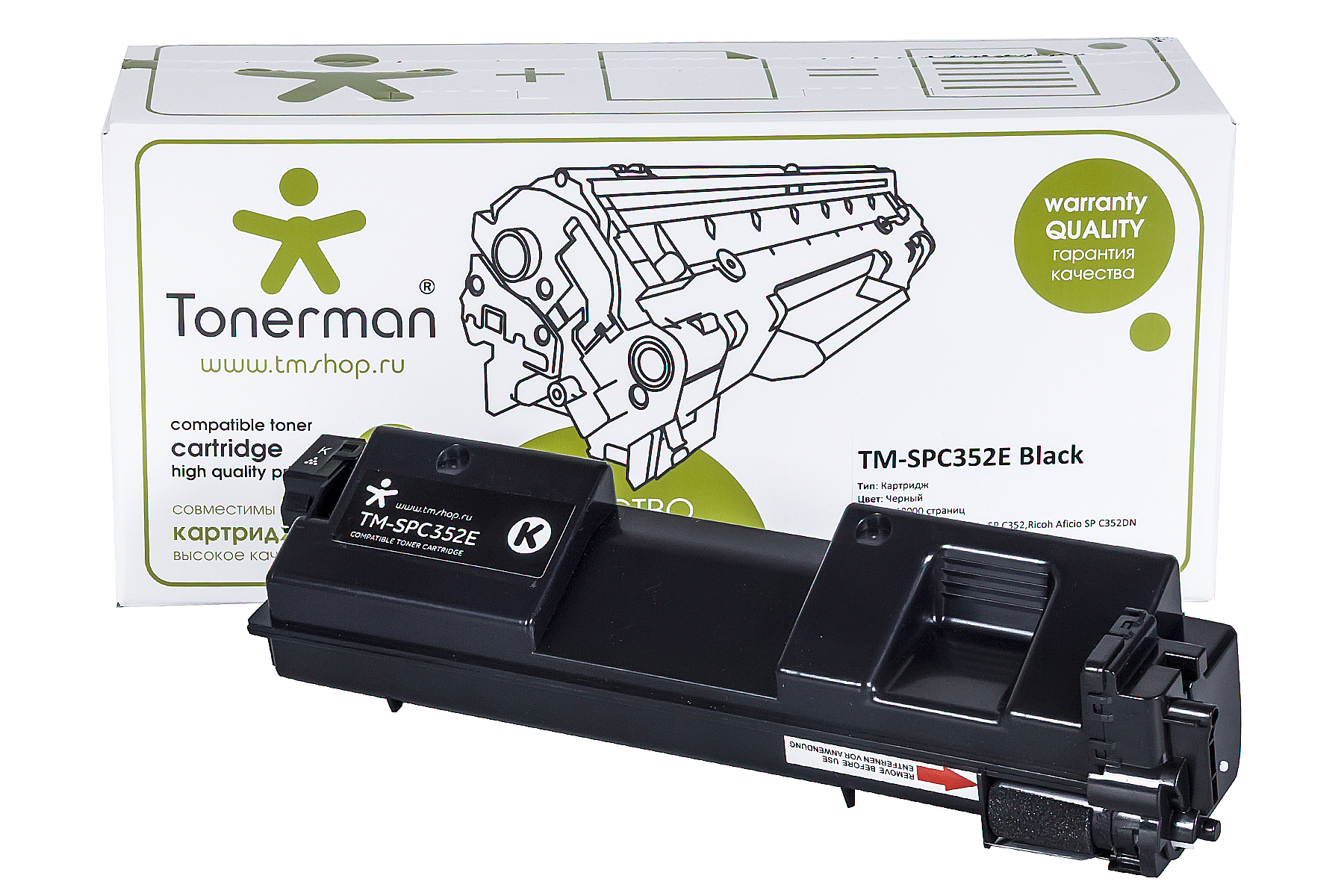 Совместимый аналог картриджа SPC352E Black для принтера Ricoh с отличной яркостью и контрастностью изображения.